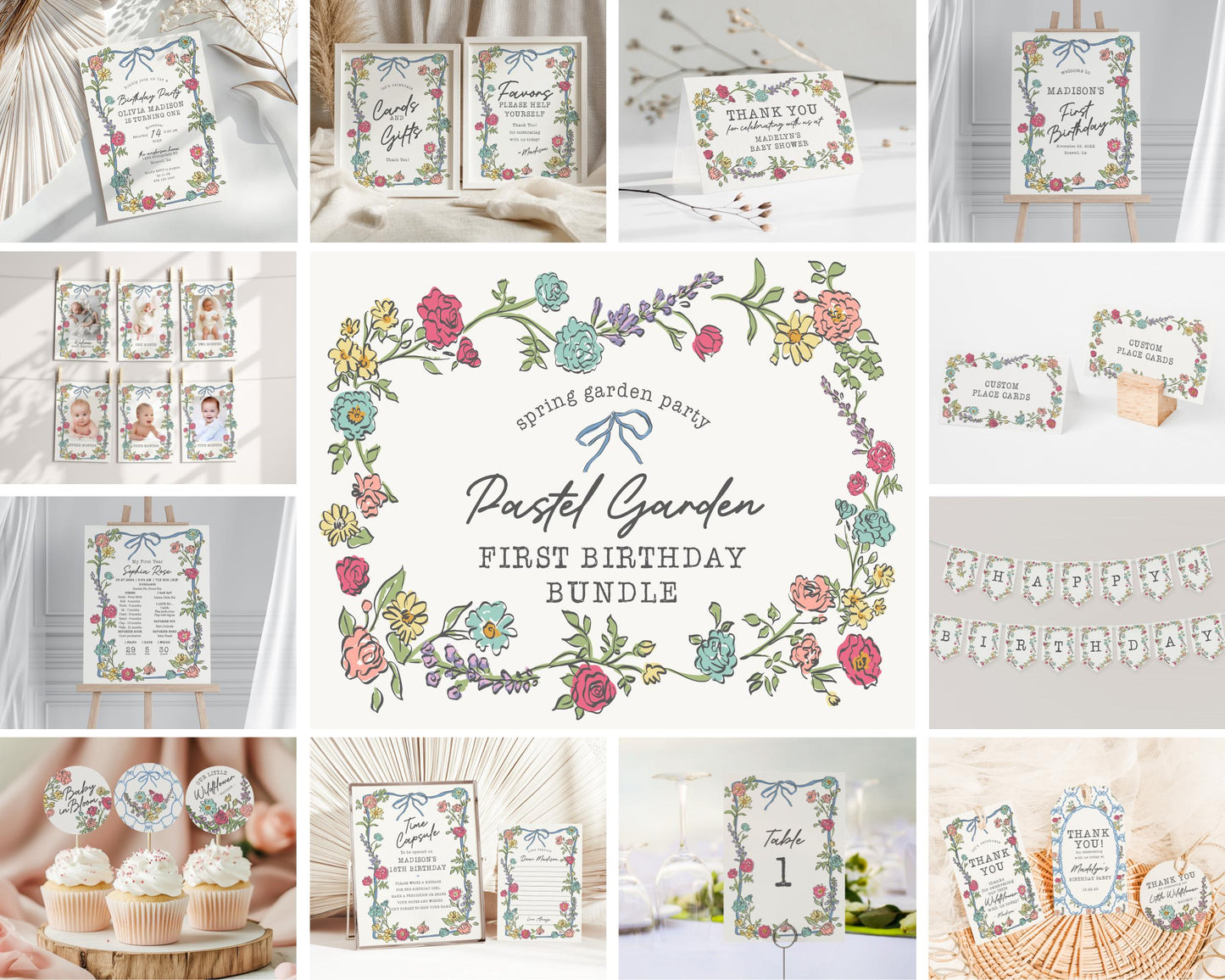 Summer Garden Party First Birthday Bundle Template
