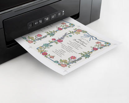 You will be emailed a link to access your template after purchase within a few minutes. No need to install software or fonts. You can print at home, your local print shop or an online print shop.