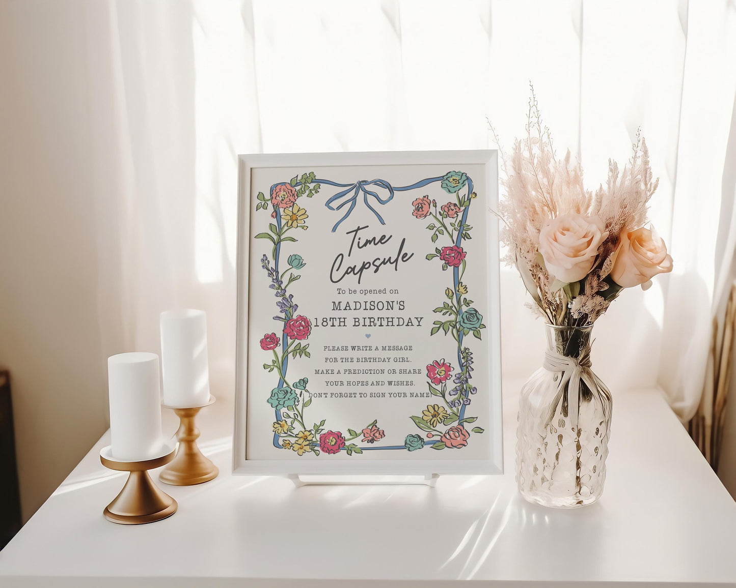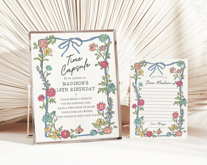 Summer Garden Party Time Capsule Template, Bright Floral 1st Birthday Party for Girl Coquette Summer Little Wildflower Bouquet Doodle WP1058