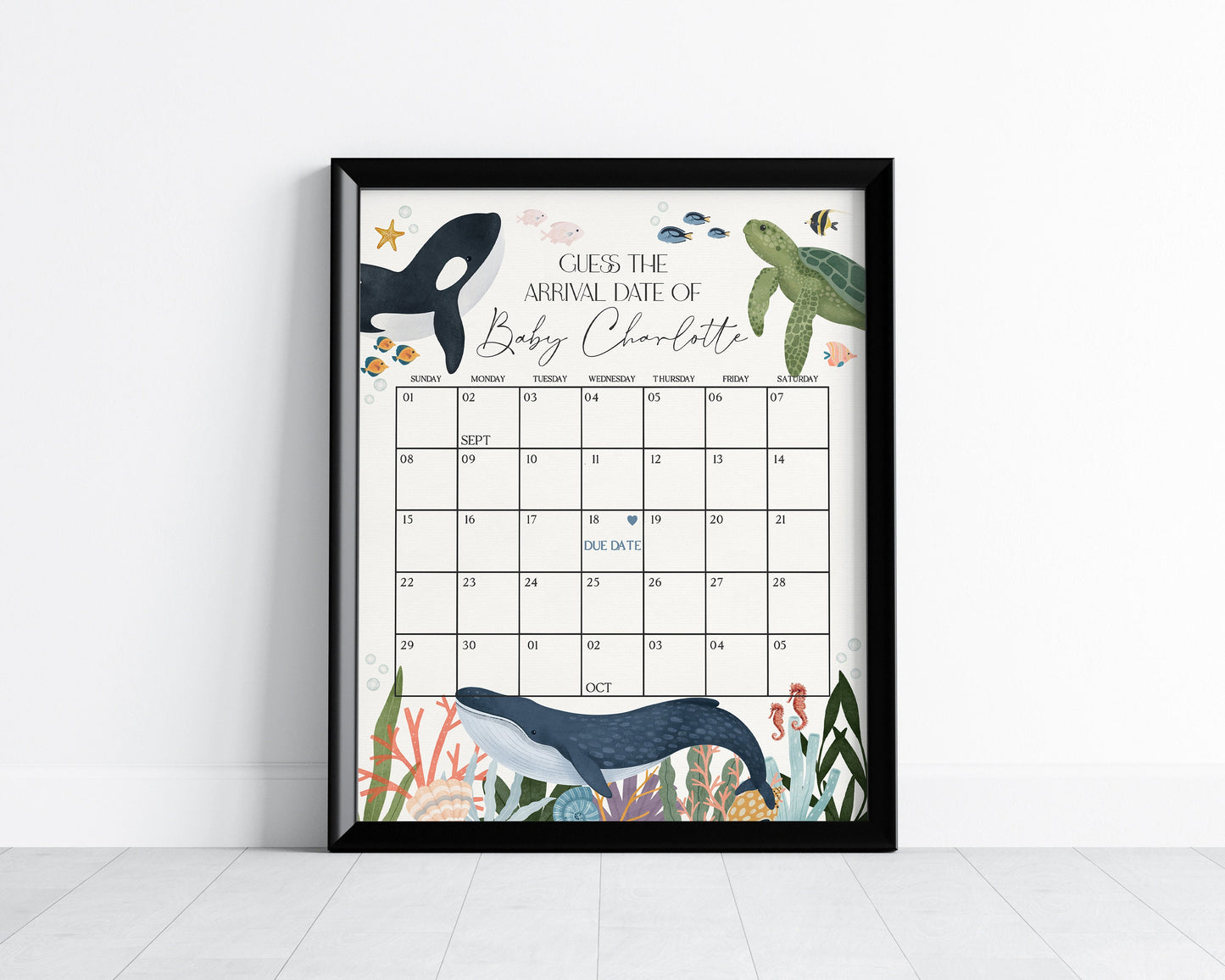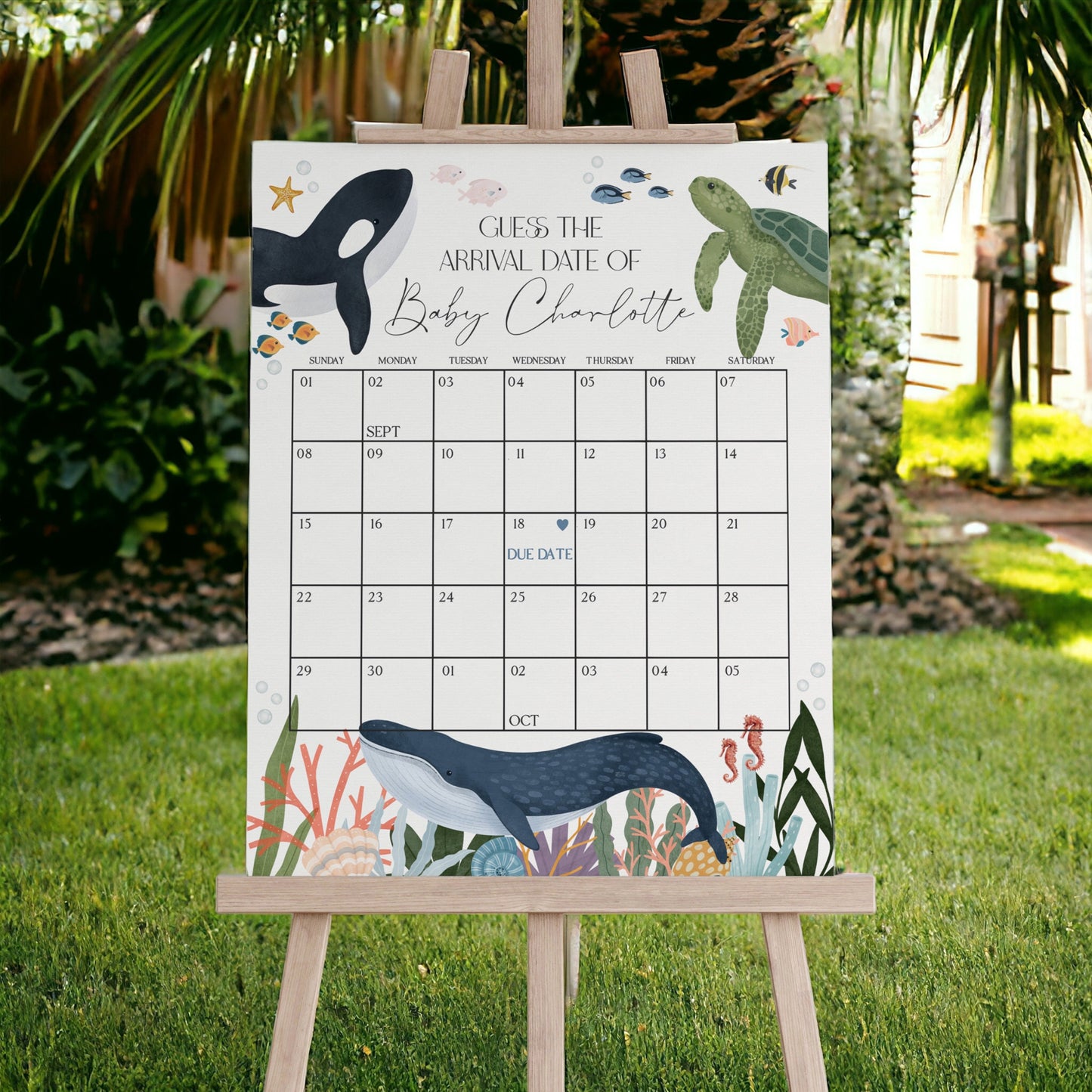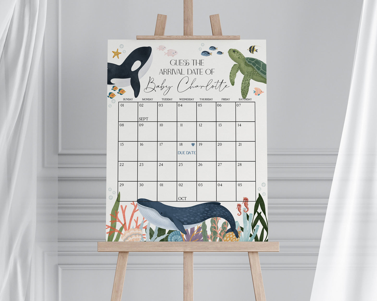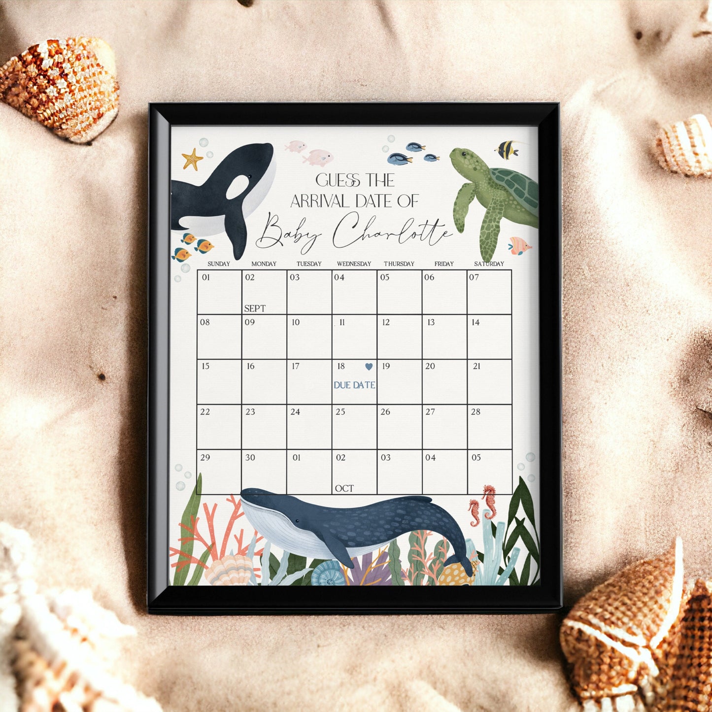 Under the Sea Baby Shower Guess the Date Game Template, Nautical Ocean Party Decor for Boy Baby Shower, Sea Life Baby Sprinkle