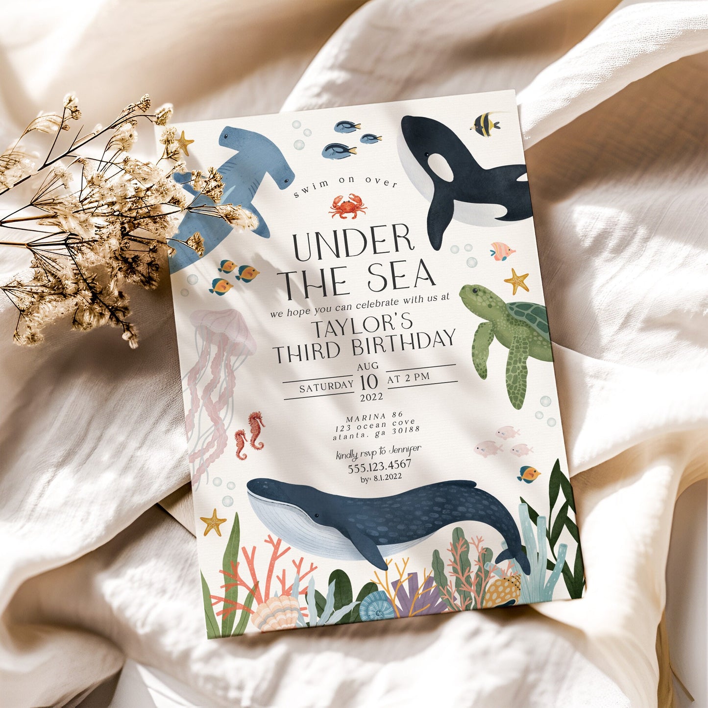 Under the Sea Birthday Party Invitation Template, Ocean Birthday for boy, Nautical Party Decor for Boy Sea Life Bday Party, Gender Neutral