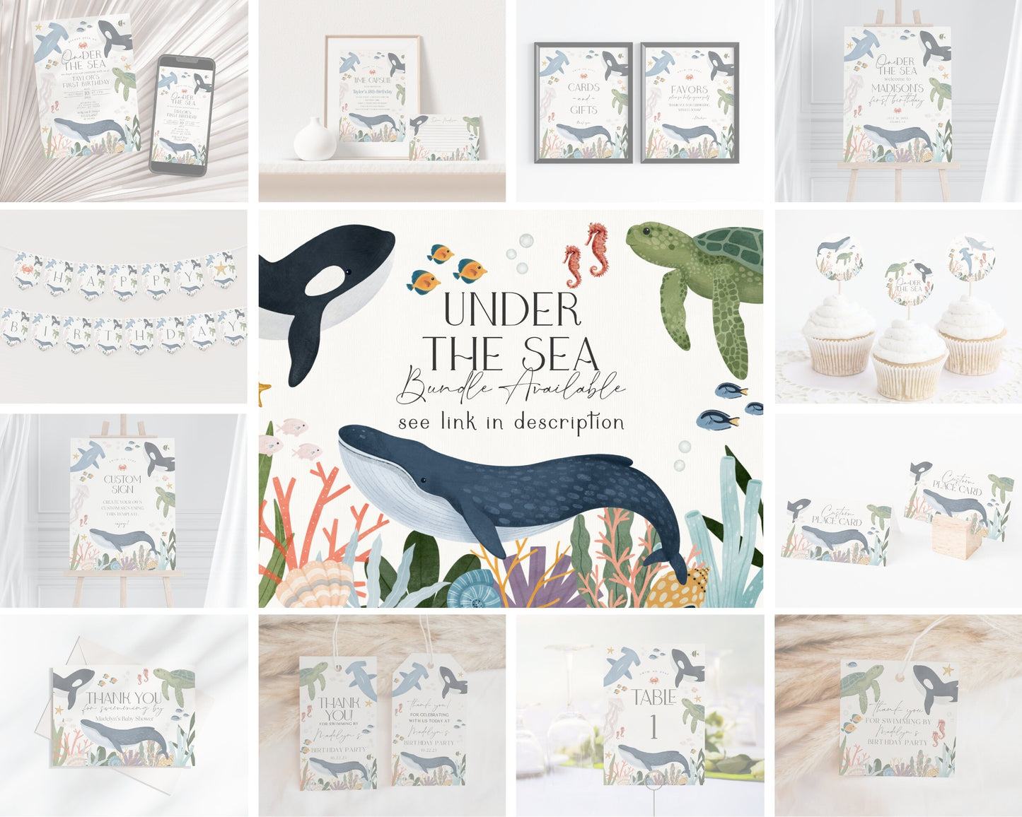 Under The Sea Birthday Bundle Template, Ocean Birthday for boy, Nautical Party Decor for Boy Sea Life Bday Party, Gender Neutral Decor