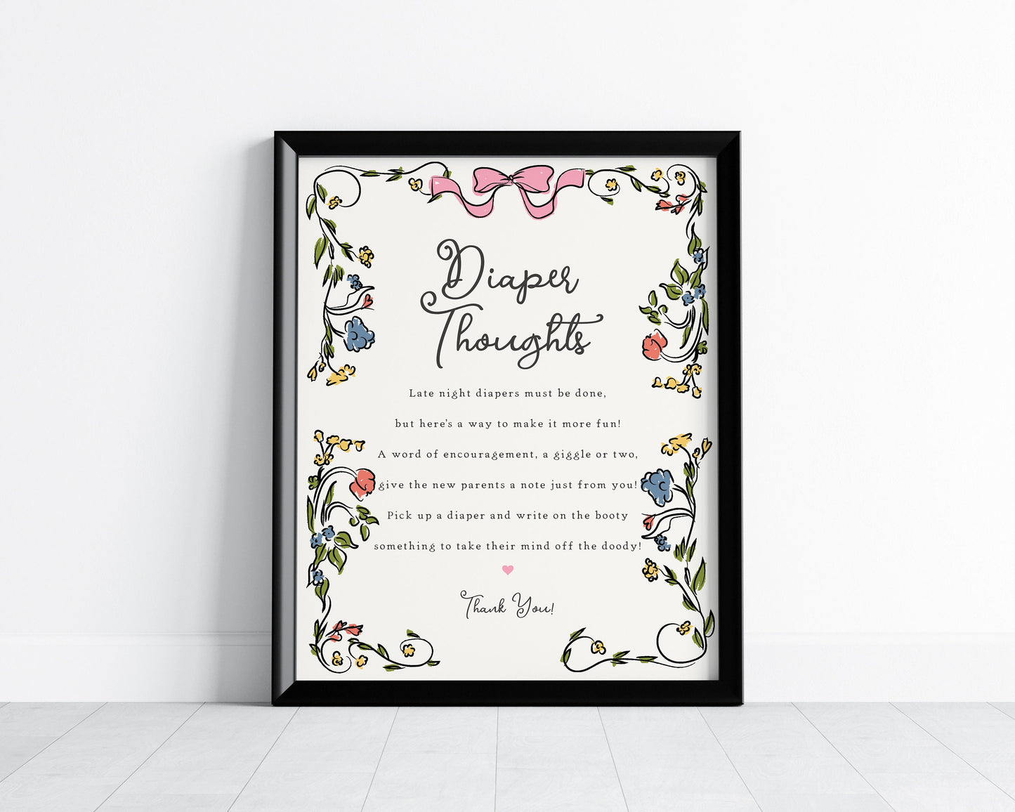 Whimsical Floral Diaper Thoughts Sign Printable Template