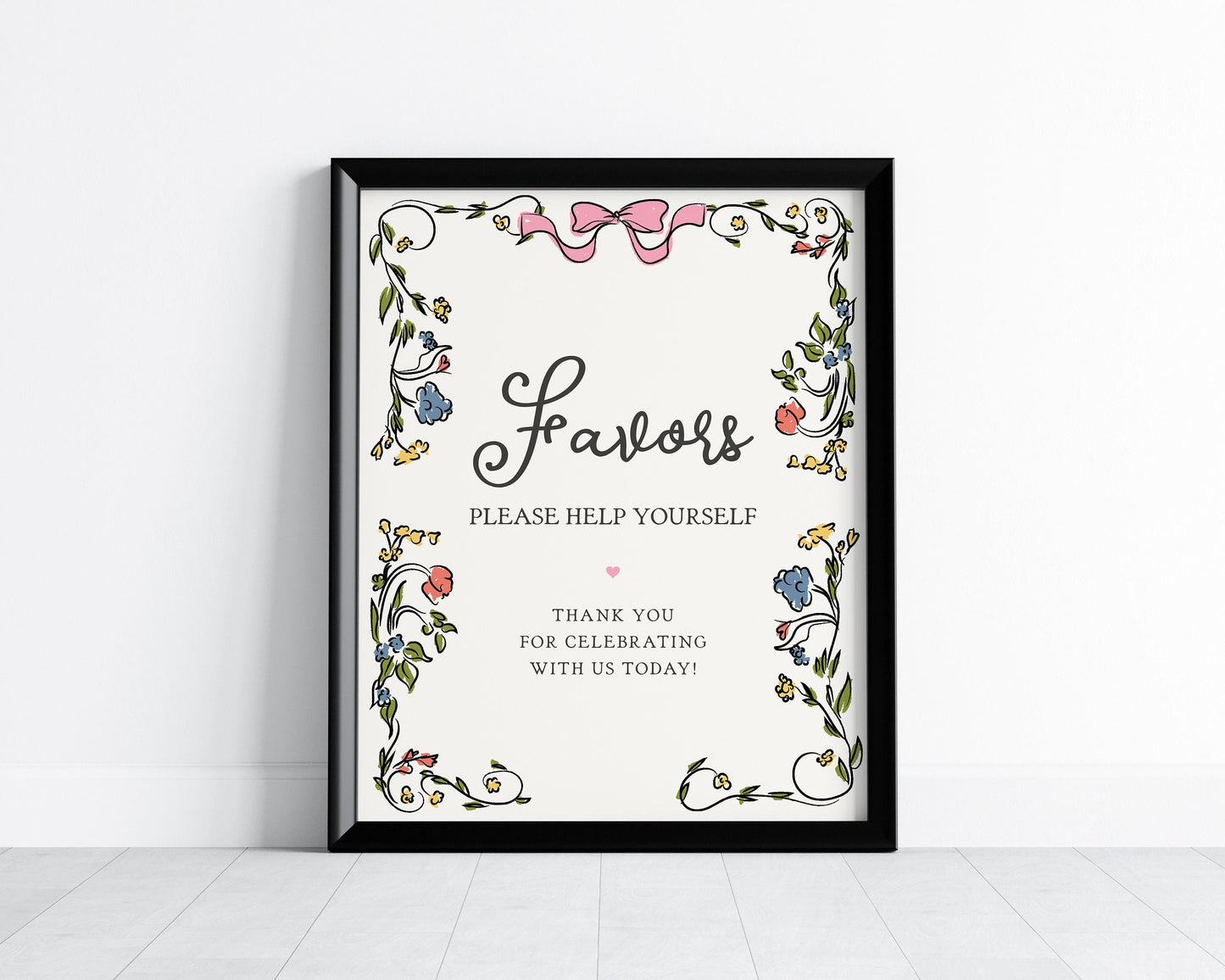 Whimsical Floral Bouquet Bar Favors Sign Printable Template