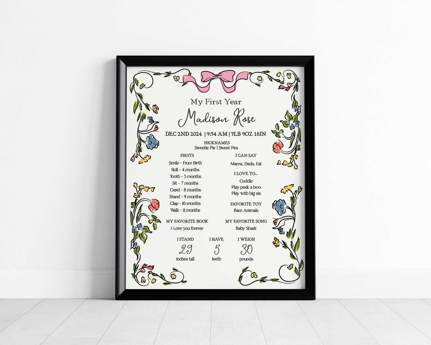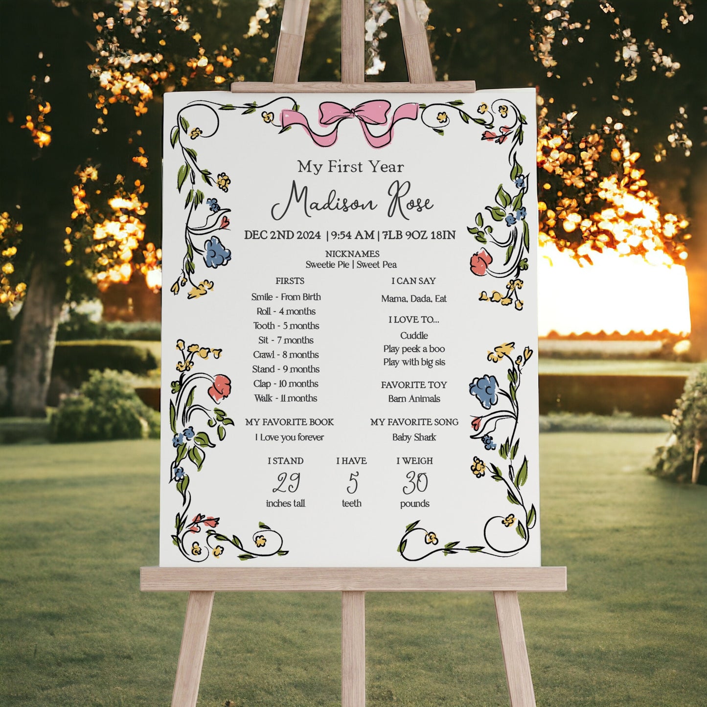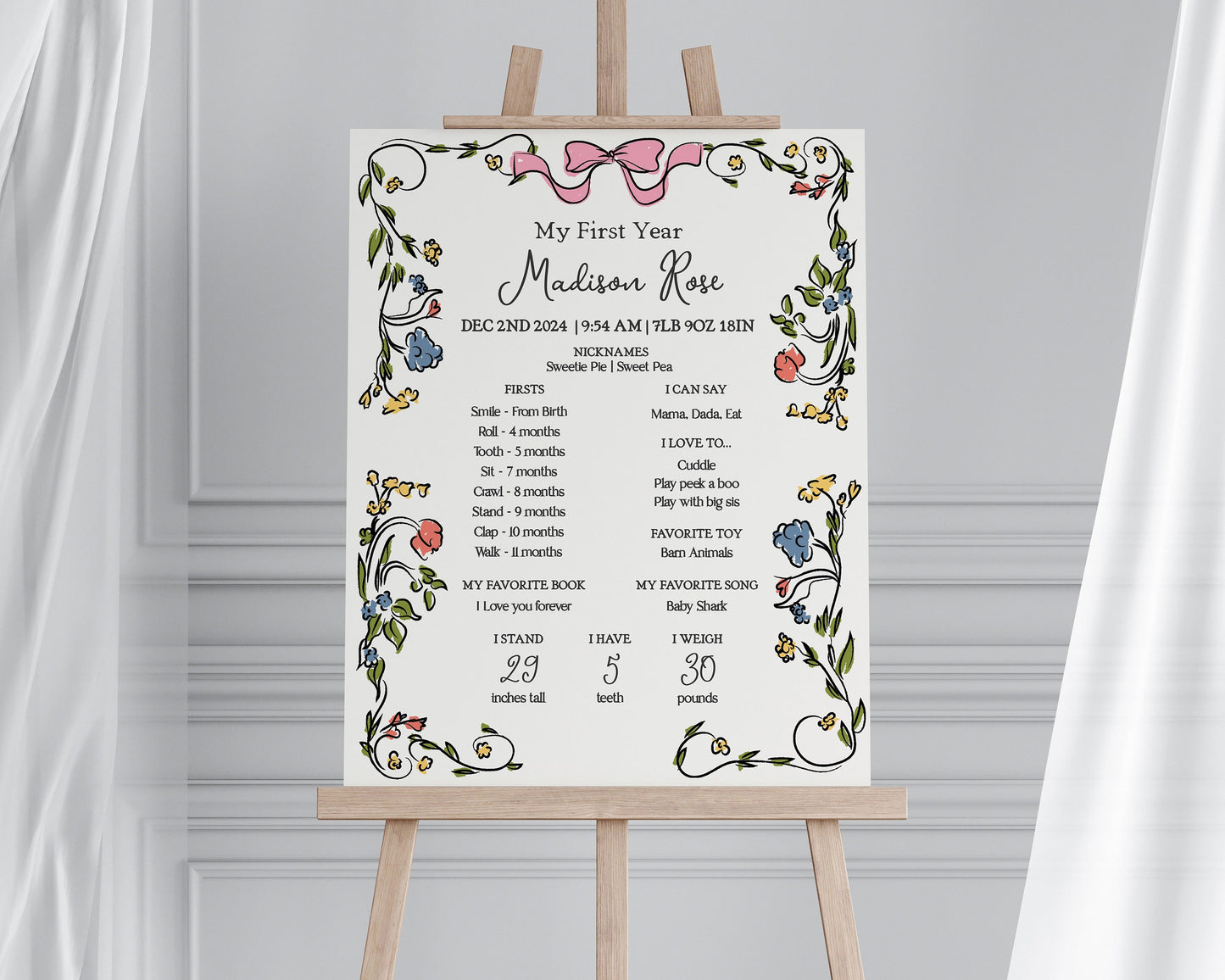 Whimsical Floral My First Year Milestone Sign Printable Template