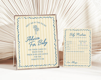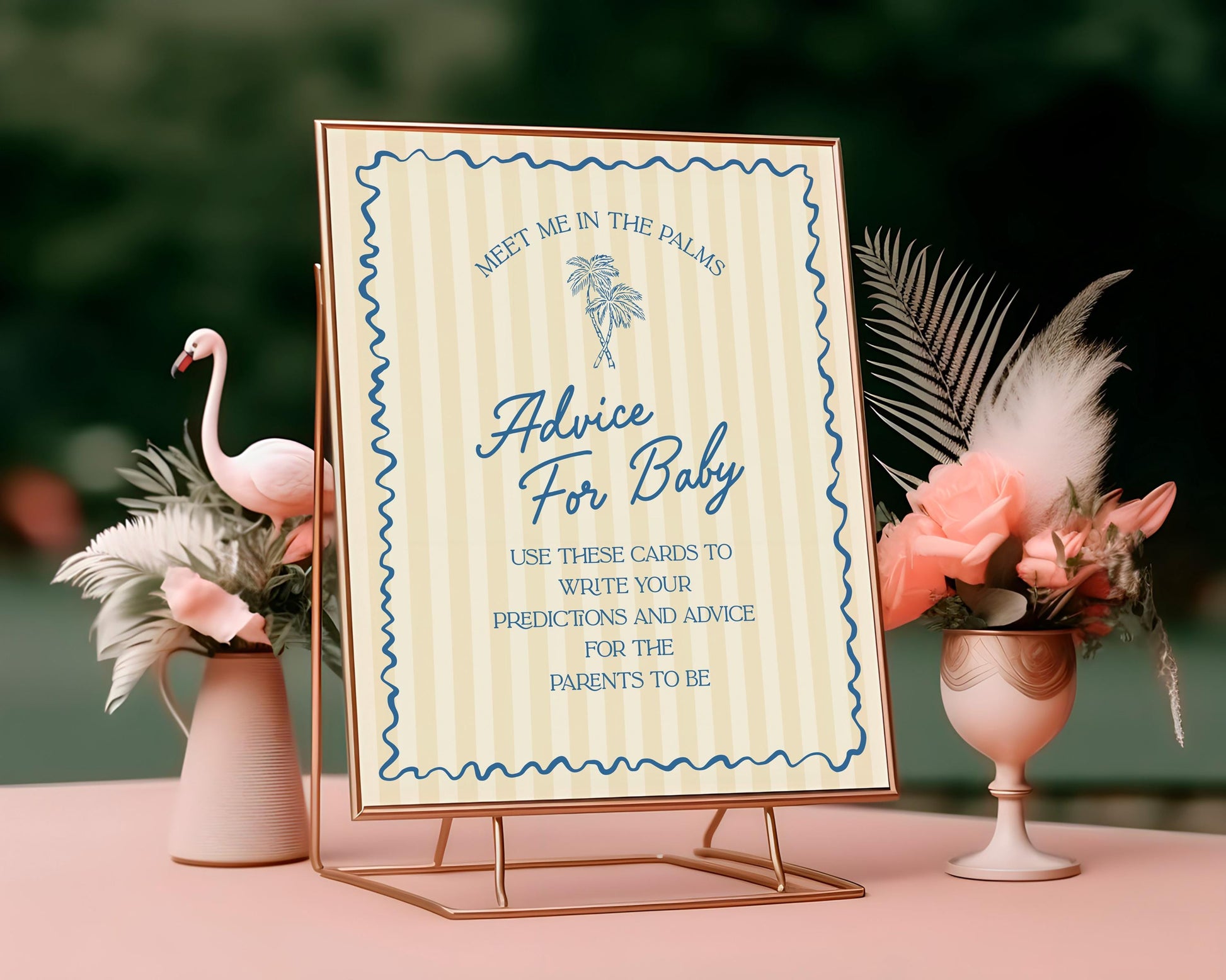 Yellow Palm Springs Advice for Baby Cards Template, Vintage Palm Tree Beach Cabana Baby Sprinkle, Retro Tropical Pastel Nesting Party WP1049