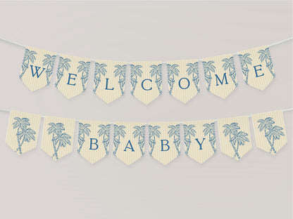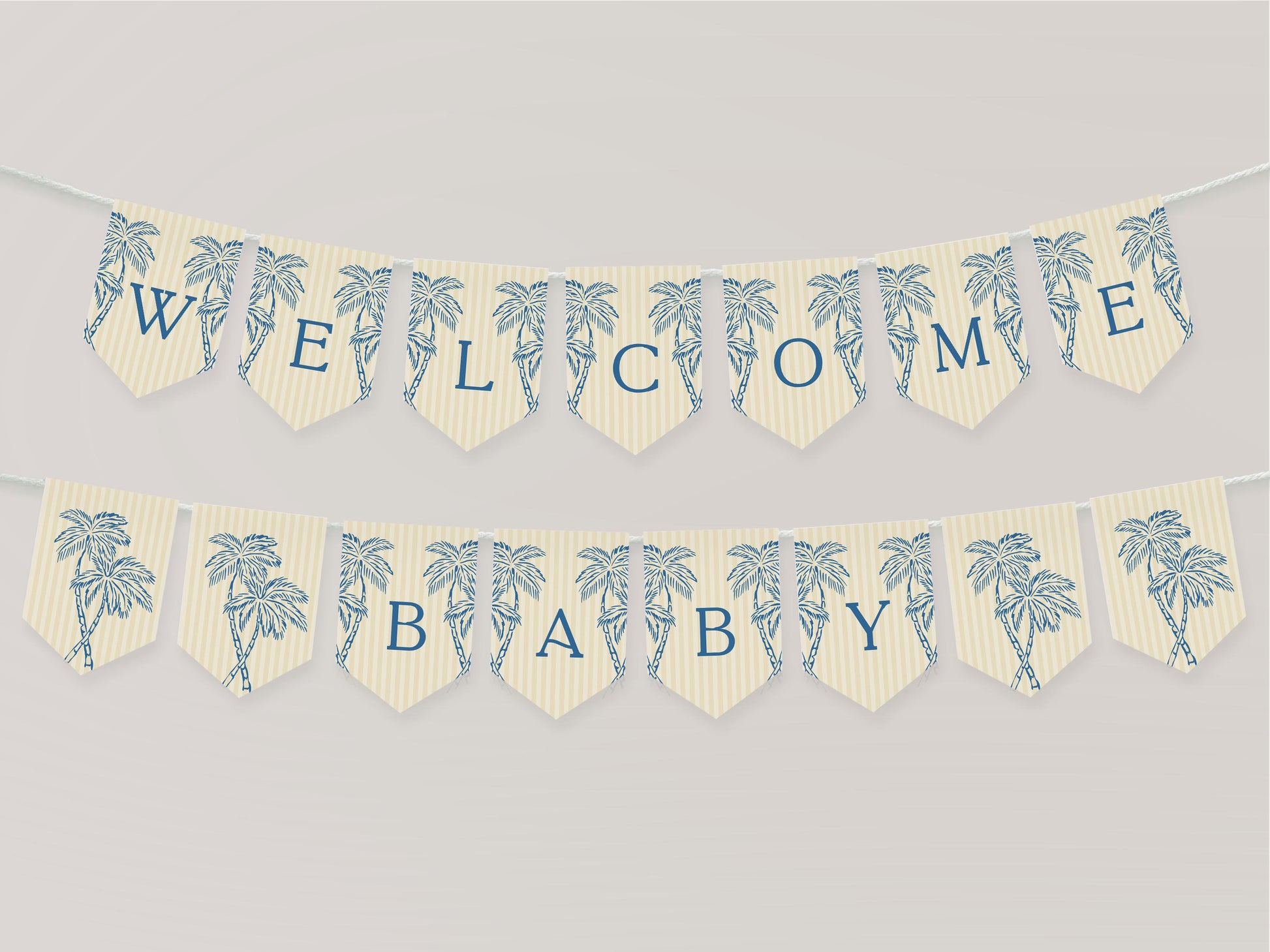 Yellow Palm Springs Baby Shower Banner Template, Vintage Palm Tree Beach Cabana Baby Sprinkle, Retro Tropical Pastel Nesting Party WP1049