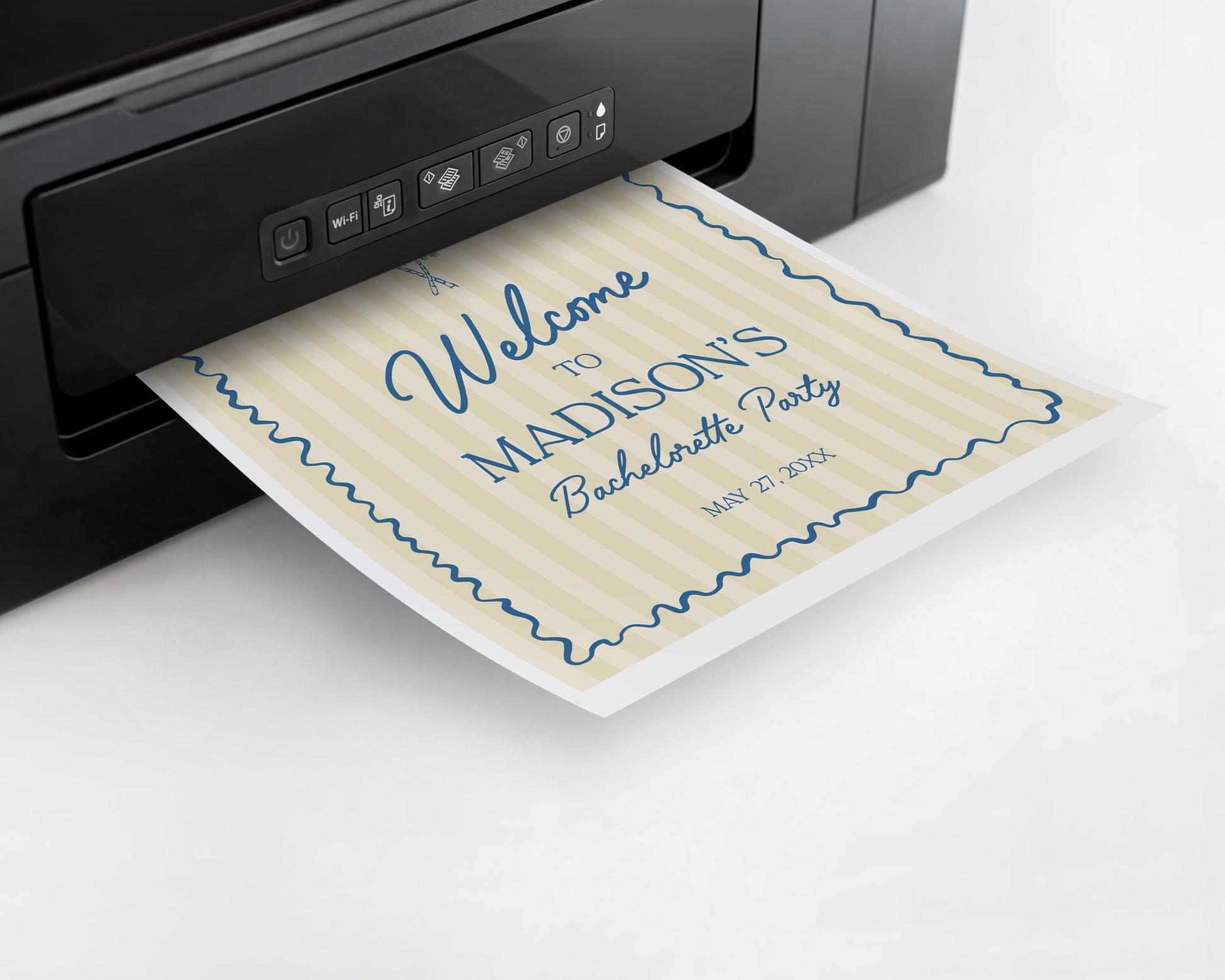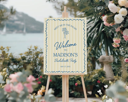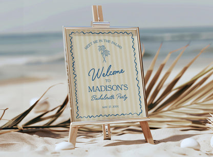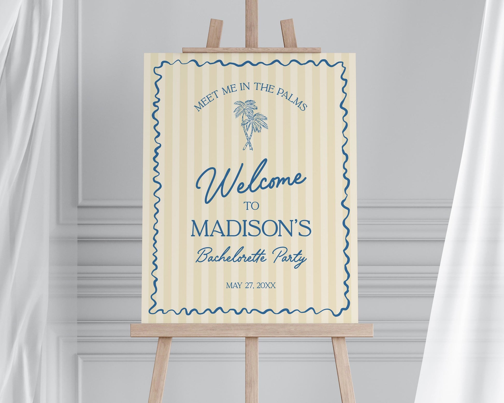 Yellow Palm Springs Custom Sign Template, Vintage Palm Tree Beach Cabana Birthday Pool Party, Tropical Pastel Bachelorette Theme WP1049