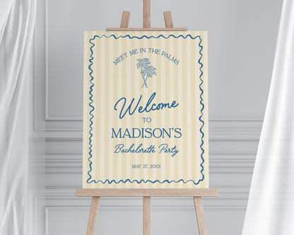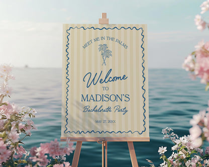 Yellow Palm Springs Bachelorette Party Welcome Template, Vintage Palm Tree Beach Cabana Pool Party, Tropical Pastel Last Fling Bach WP1049