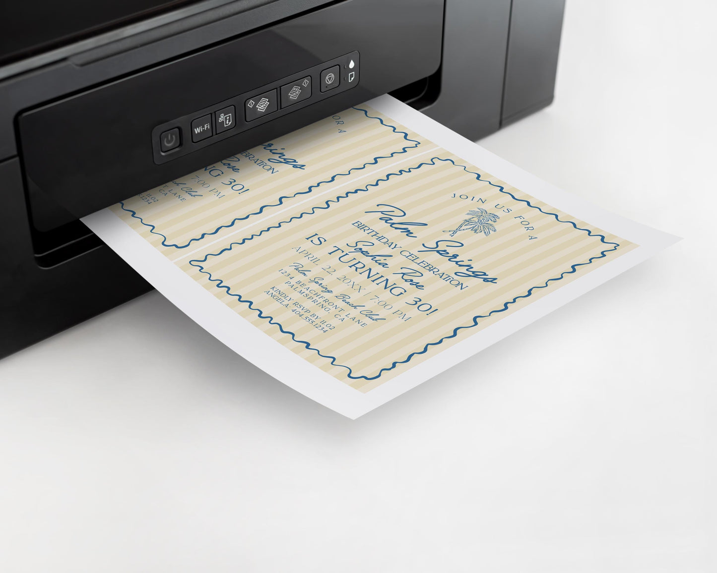 You will be emailed a link to access your template after purchase within a few minutes. No need to install software or fonts. You can print at home, your local print shop or an online print shop.
