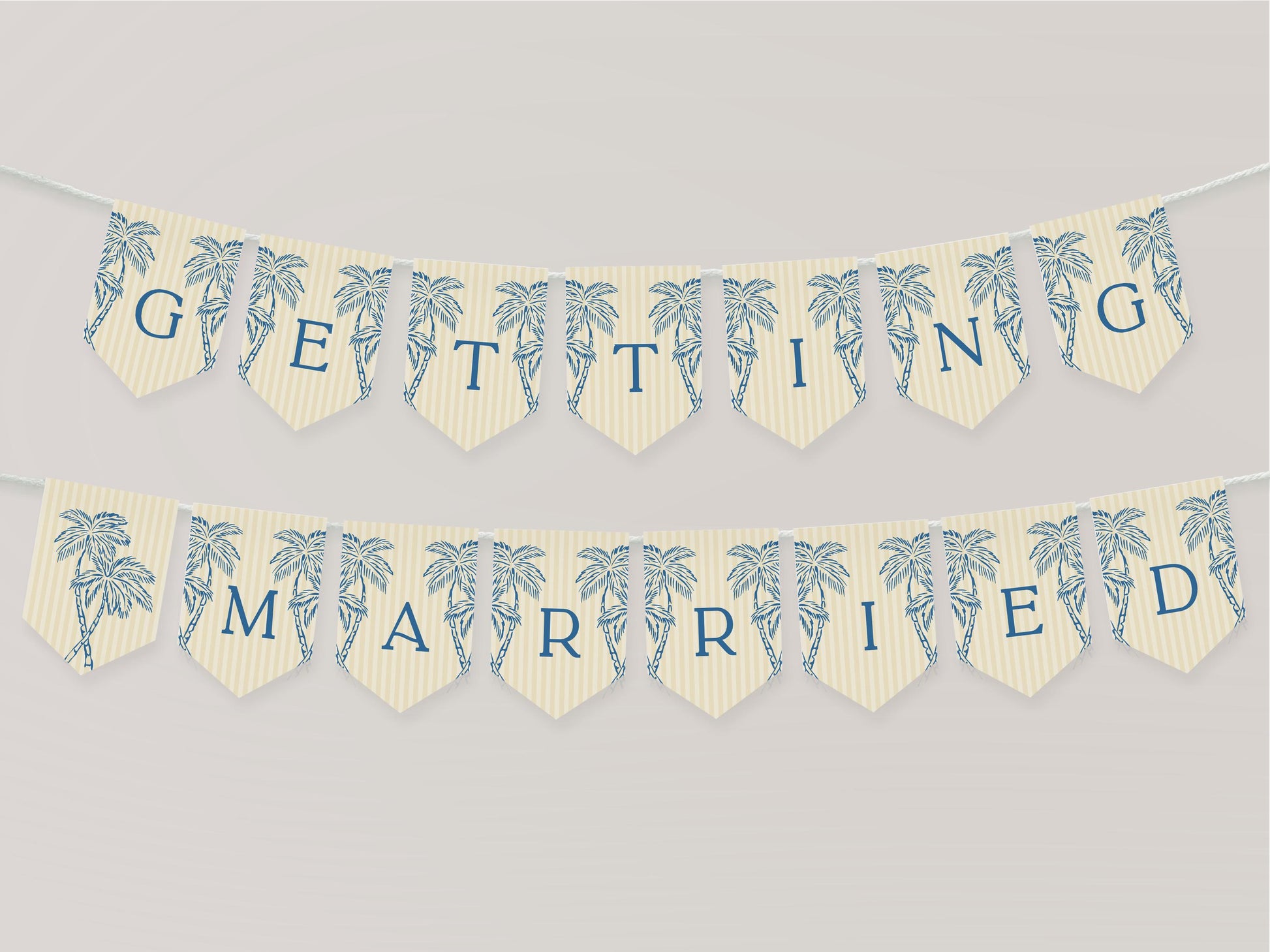 Yellow Palm Springs Bridal Shower Banner Template, Vintage Palm Tree Beach Cabana Bridal Brunch, Retro Bachelorette Pastel Pool Party WP1049
