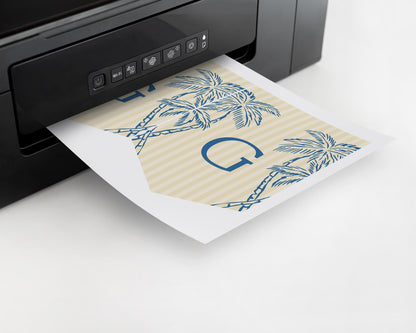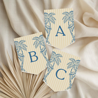 Yellow Palm Springs Place Cards Template, Vintage Palm Tree Beach Cabana Birthday Pool Party, Tropical Pastel Bachelorette Bridal WP1049