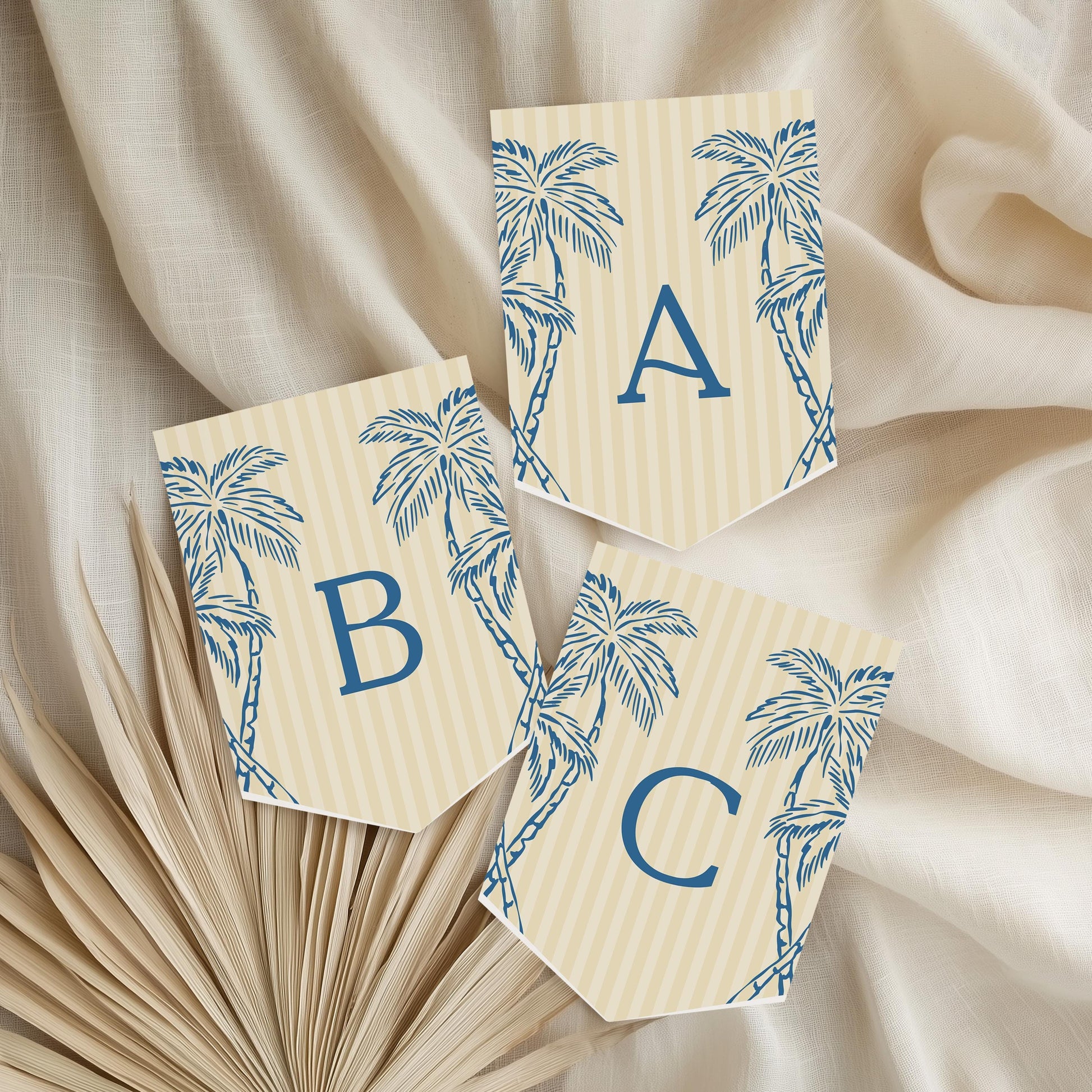 Yellow Palm Springs Table Number Cards Template, Vintage Palm Tree Beach Cabana Birthday Pool Party, Tropical Pastel Bachelorette WP1049