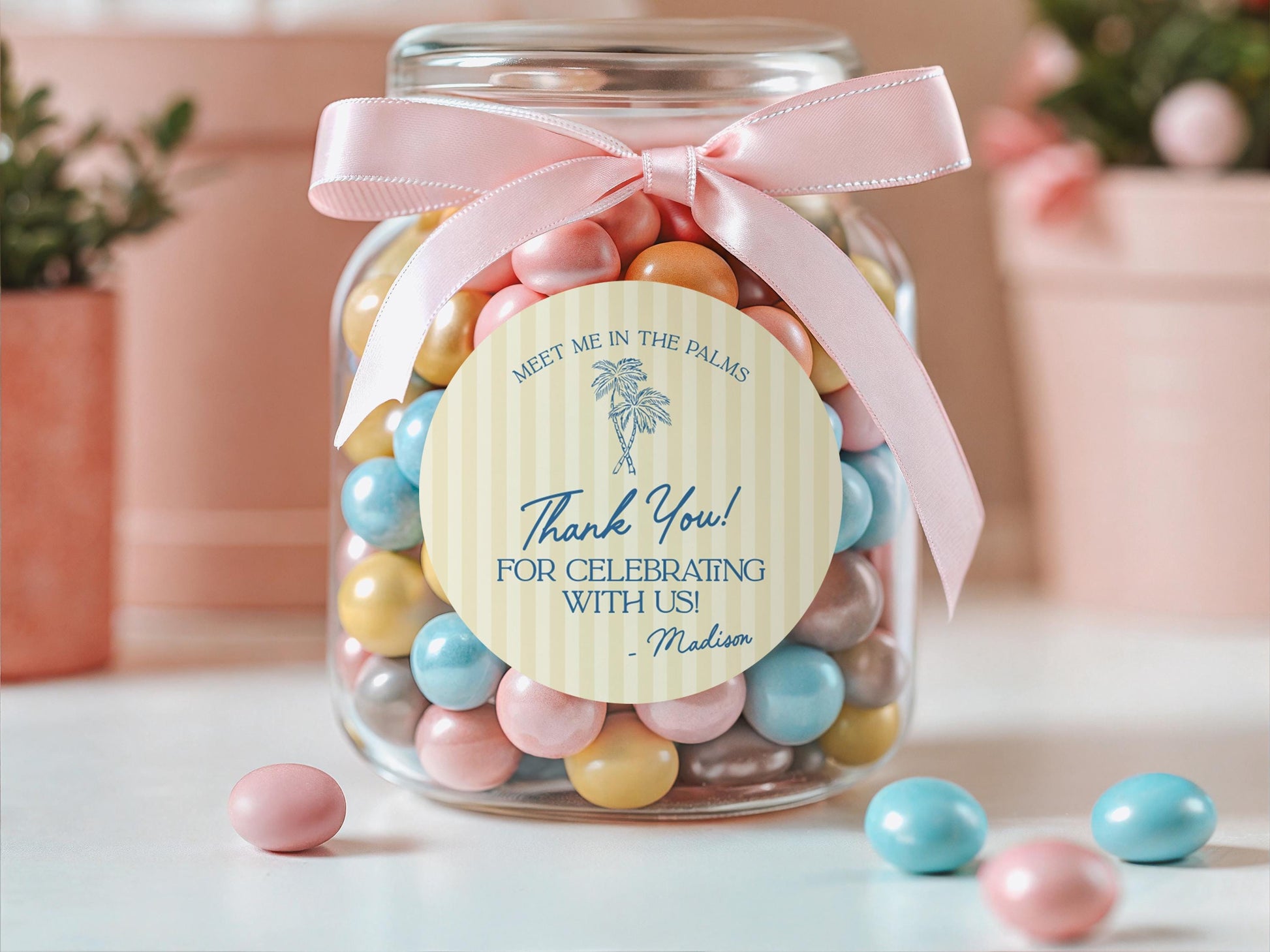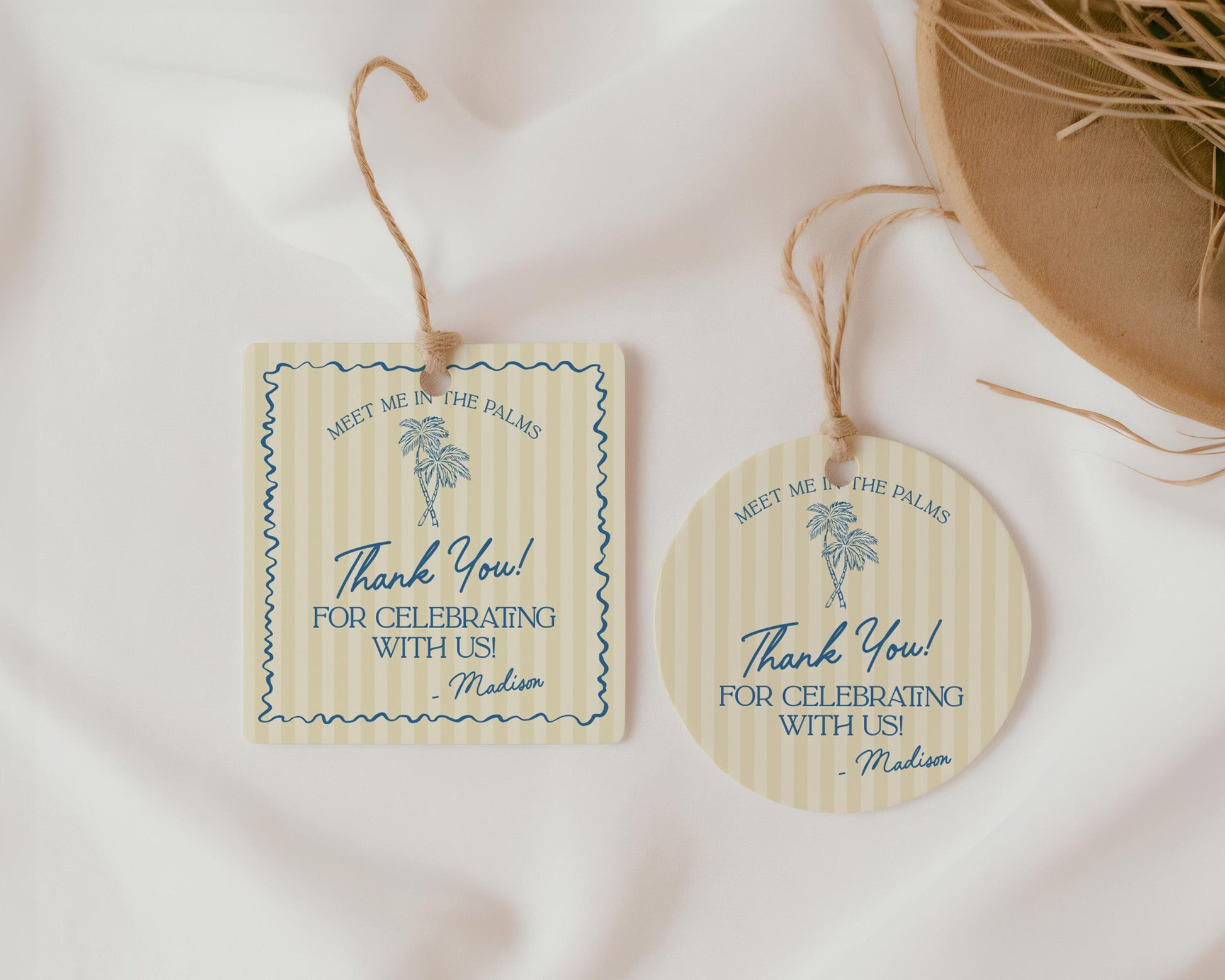 Yellow Palm Springs Birthday Party Favor Tags Template