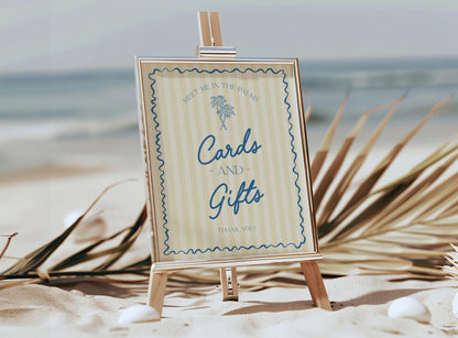 Yellow Palm Springs Cards & Gifts and Favors Sign Template, Vintage Palm Tree Beach Cabana Birthday Pool Party, Tropical Bachelorette WP1049