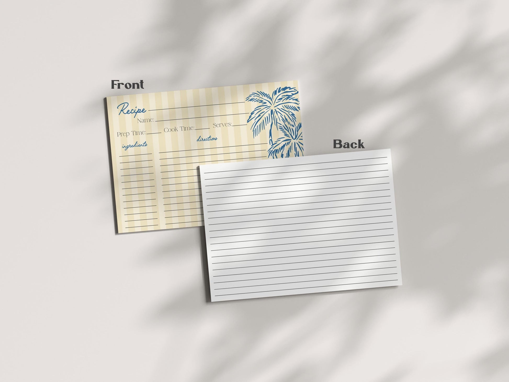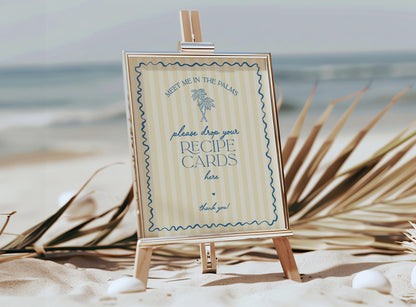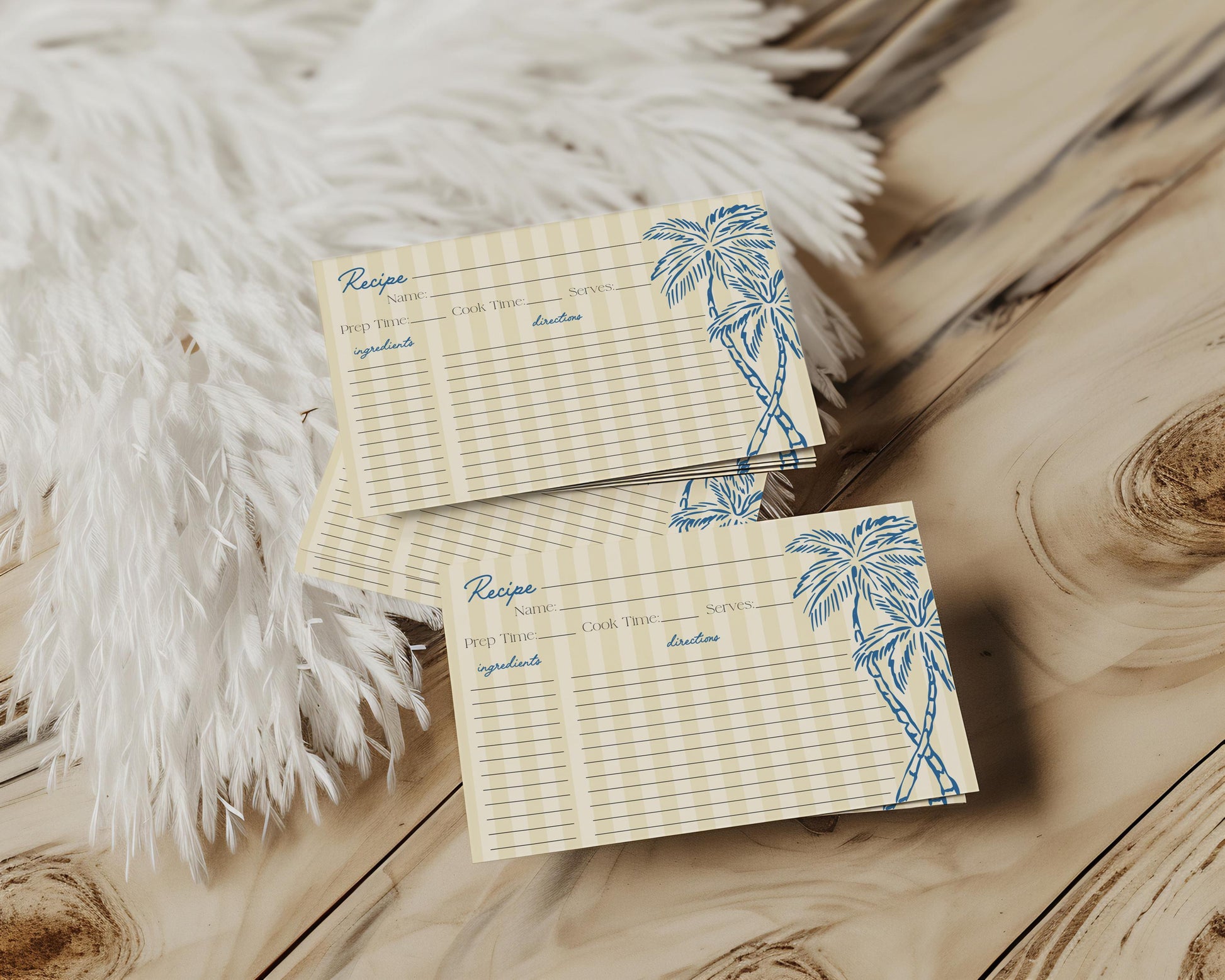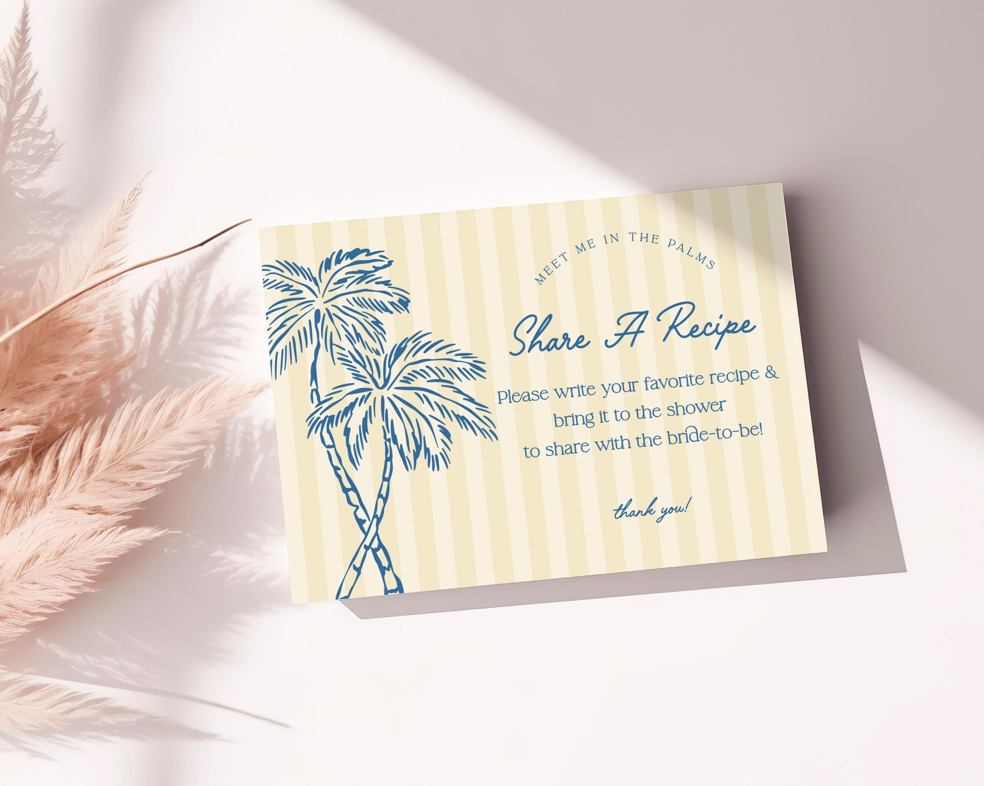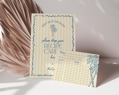 Yellow Palm Springs Recipe Card Bridal Shower Template, Vintage Palm Tree Beach Cabana Bridal Brunch Retro Tropical Pastel Pool Party WP1049