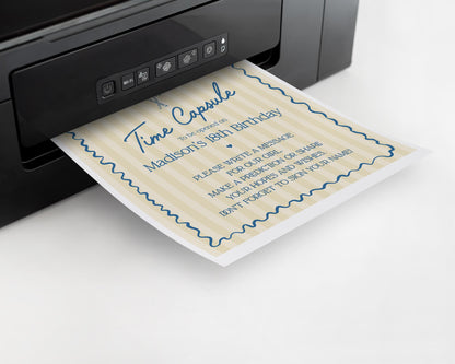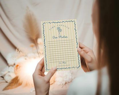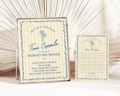 Yellow Palm Springs Time Capsule Template, Vintage Palm Tree Beach Cabana First Birthday Pool Party, Retro Tropical Pastel Party WP1049